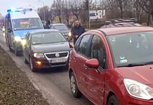 Kierujący volkswagen wyjeżdżając z parkingu na ul...