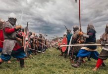 Pojedynki i walki średniowiecznych wojów w Skansenie w Ochli