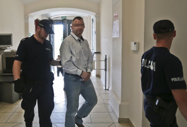 Rafał P. to wysoki, mocno zbudowany mężczyzna do sądu został wprowadzony ze skutymi rękoma i nogami. Wykształcenie podstawowe, zawód spawacz. Pracował w sadzie w Starym Kisielinie, którego jest udziałowcem. Był karany za prowadzenie po pijanemu. Wcześniej leczył się odwykowo. Spoglądał na siedzącego na sali ojca. Wykonywał w jego kierunku delikatne gesty, tak jakby go uspokajał chcąc powiedzieć „będzie dobrze”. Widać było również, że ojciec będzie mocno zaangażowany w rozprawę.
