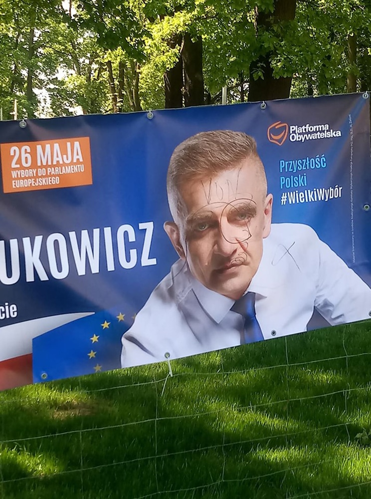 O zdarzeniu poinformowali nas Czytelnicy. Kobieta podeszła do plakatów wyborczych rozwieszonych w centrum Krosna Odrzańskiego. Flamastrem pomalowała wizerunek Bartosza Arłukowicza na plakatach. Na zdjęciu na czole napisała „von”.