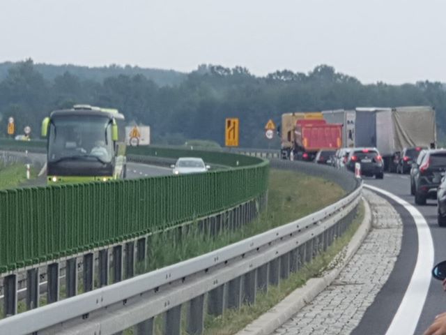 Korek ma już długość ponad 4 km. Powodem jest duży ruch na S3 i zwężka z powodu budowy mostu nad Odrą, ale najgorsze, że lewy pas zablokował wolno jadący kierowca ciężarówki.