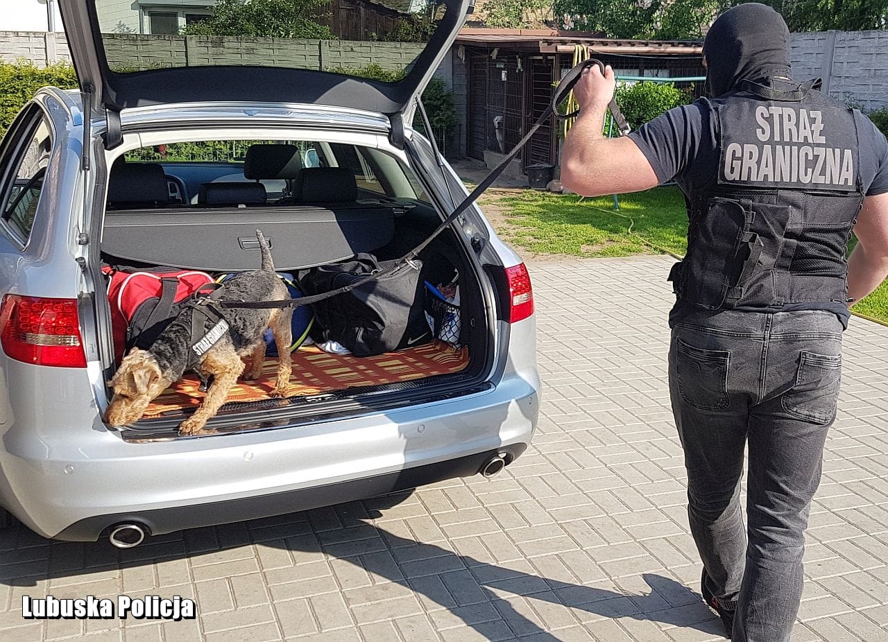 Po zatrzymaniu mężczyzny policjanci przystąpili do przeszukania posesji i samochodu. Do działań zaangażowany był funkcjonariusz straży granicznej z psem przeszkolonym do wyszukiwania narkotyków. – Pies w ciągu kilku minut odnalazł w jednym z pomieszczeń gospodarczych worek z marihuaną oraz ukryte w torbie woreczki strunowe z zawartością amfetaminy – mówi podinsp. Stanisławska. Było tam ponad 222 gramy marihuany oraz ponad 56 gramów amfetaminy. Znaleziono także 5 tabletek ecstasy.