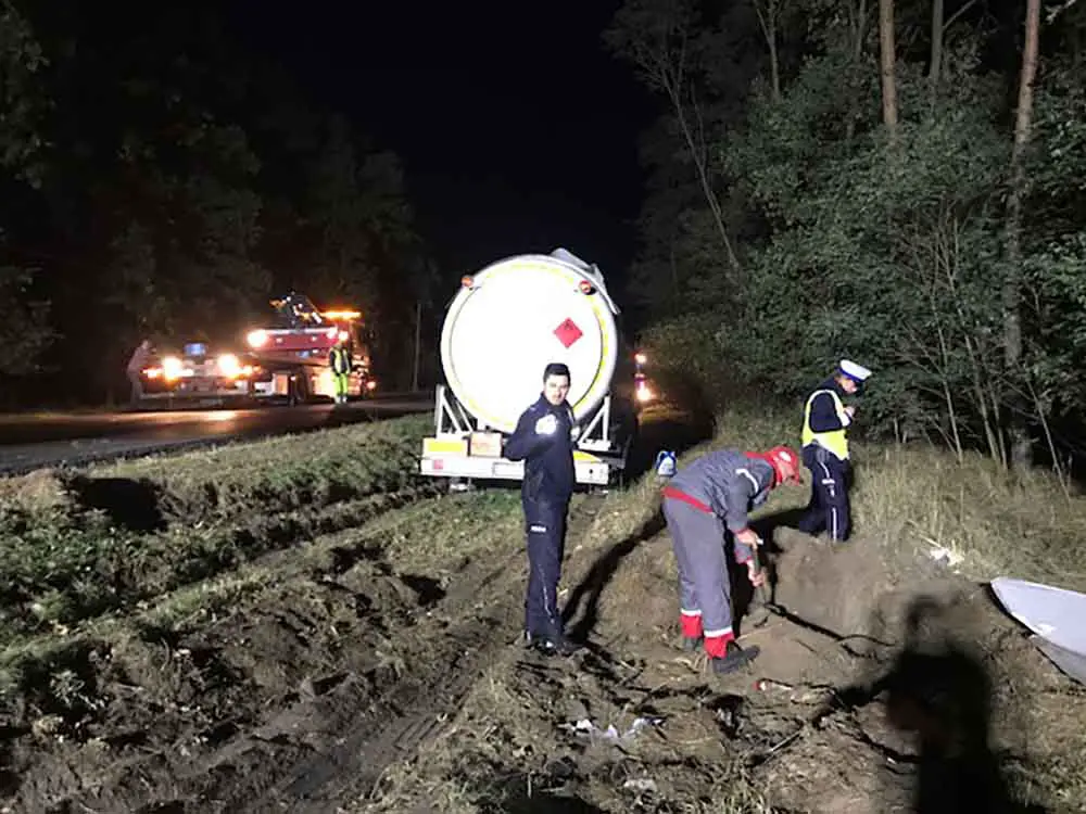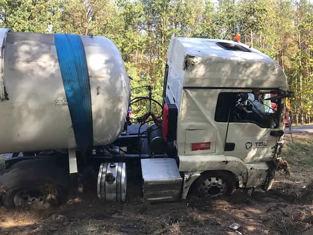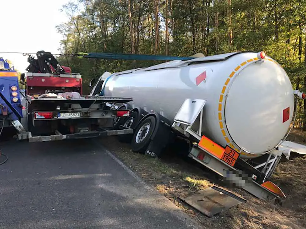 Wszystko wydarzyło się w poniedziałek, 8 października, przed godz. 9.00. Cysterna z gazem jechała trasą Żagań-Nowogród Bobrzański. Nagle kierowca wpadł w poślizg i stracił panowanie nad kierownicą. Cysterna wypadła z drogi i przewróciła się na bok. Nikomu nic się nie stało. Nie doszło też do wycieku gazu.
