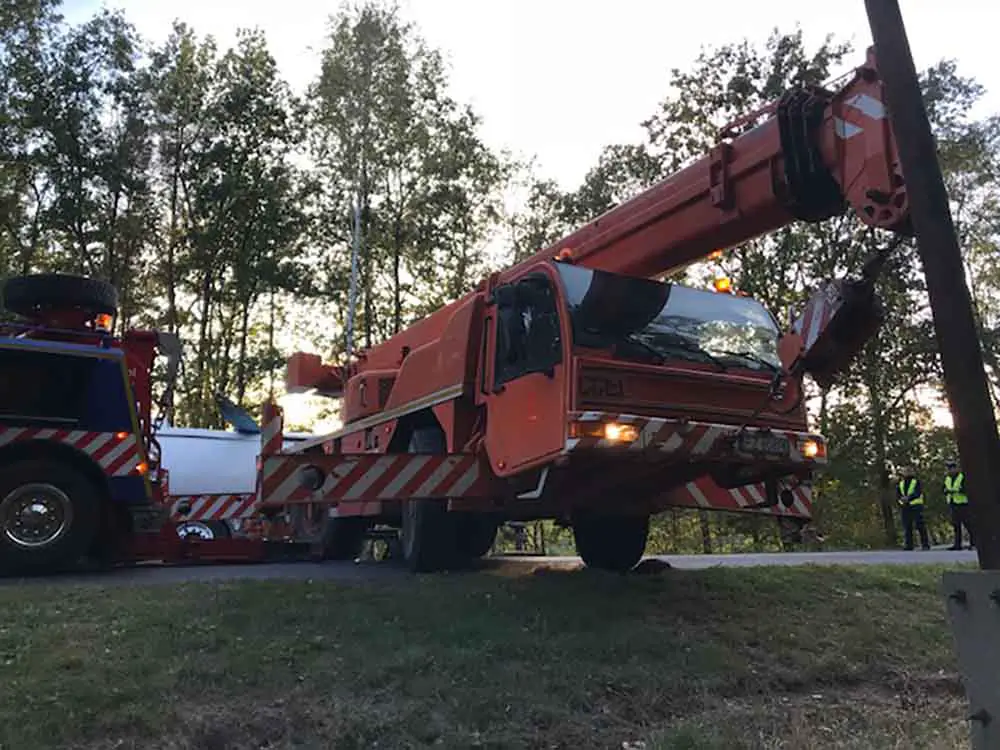Już samo poniesienie było trudnym technicznie zadaniem. Na miejsce został ściągnięty specjalistyczny dźwig. Dojechał również podnośnik. Kiedy ciężarówka stała na kołach zaczęły się kolejne niespodziewane problemy.