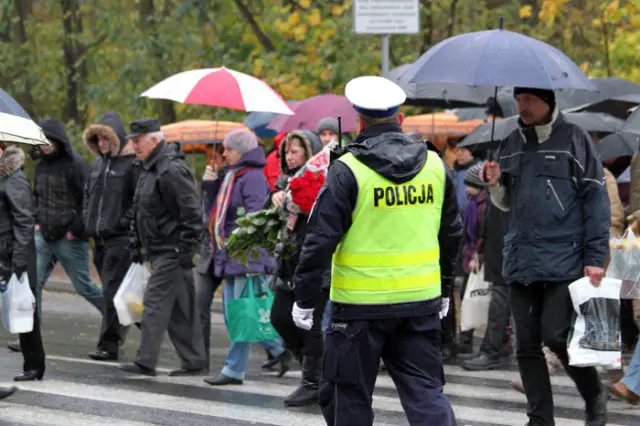 Od samego rana przy cmentarzu na ul. Wrocławskiej są policjanci. Regulują ruchem i dbają o bezpieczeństwo przechodniów oraz kierujących.