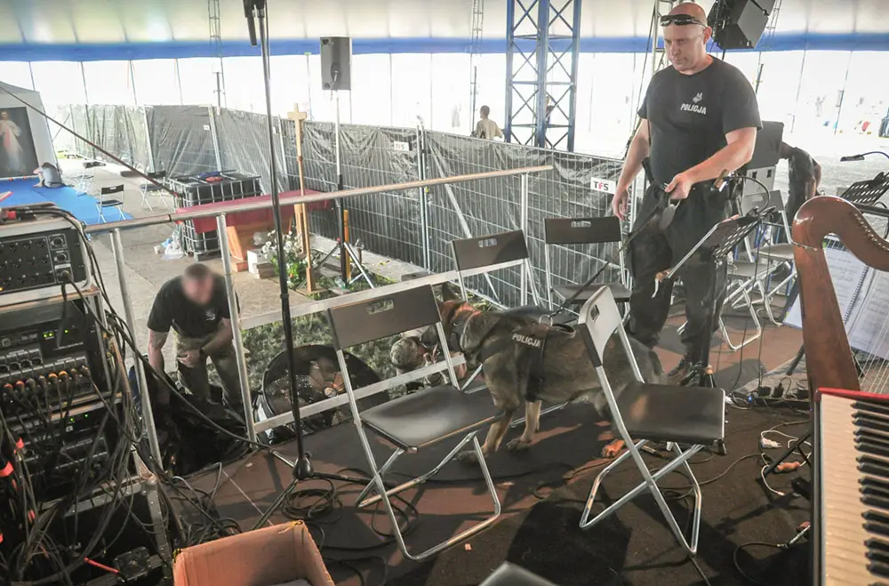 Kilkunastu ekspertów-pirotechników oraz wyszkolone psy zaangażowano do sprawdzenia, czy na scenach festiwalu Pol’And’Rock oraz Przystanku Jezus nie umieszczono materiałów pirotechnicznych, które mogłyby doprowadzić do zdarzenia na ogromną skalę. Policjanci podeszli do zadania bardzo skrupulatnie. Sprawdzenie zakończyło się przed rozpoczęciem artystycznych występów. Nie ujawniono żadnych niebezpiecznych materiałów.