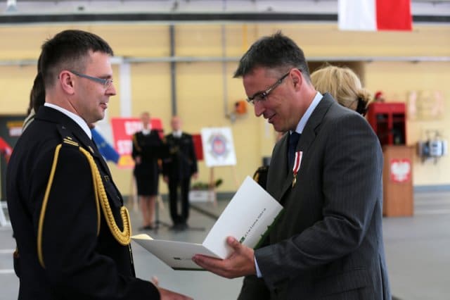 Strażacy dostali również awanse na wyższe stopnie, nagrody oraz medale. Potem wiceprezydent Haręźlak uruchomiła skokochron. Nowoczesny sprzęt pozwoli skutecznie ratować osoby do wysokości 25 m. Wielka poduszka, po uruchomieniu była gotowa do pracy zaledwie w kilkadziesiąt sekund. – To dla nas bardzo przydatny i niezbędny sprzęt – mówi mł. bryg. Gura.