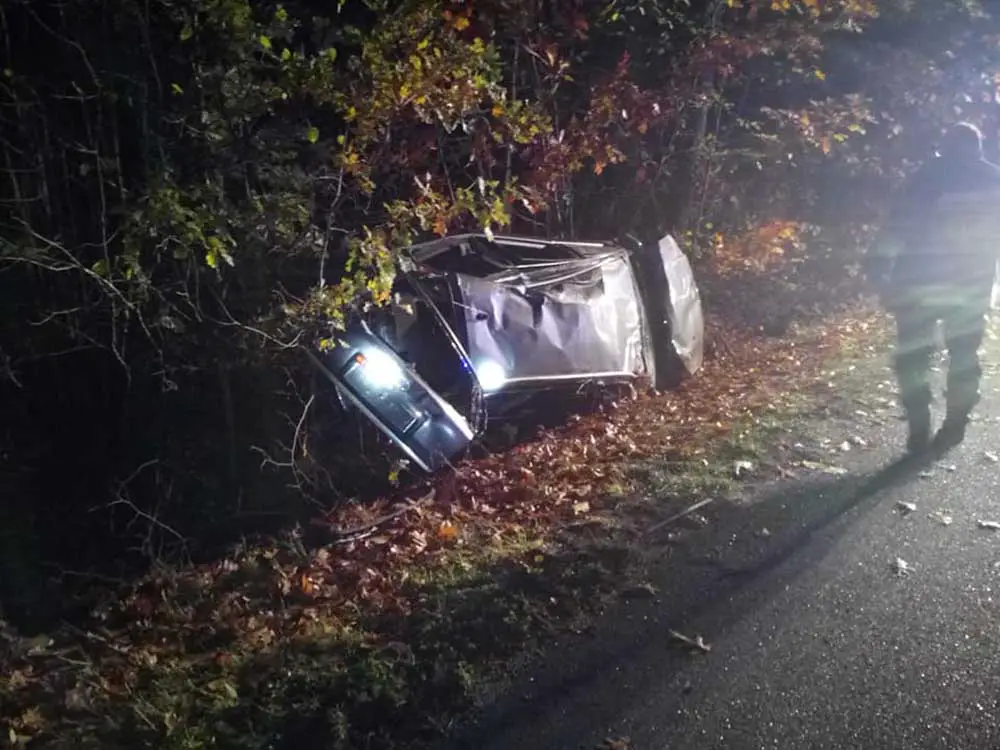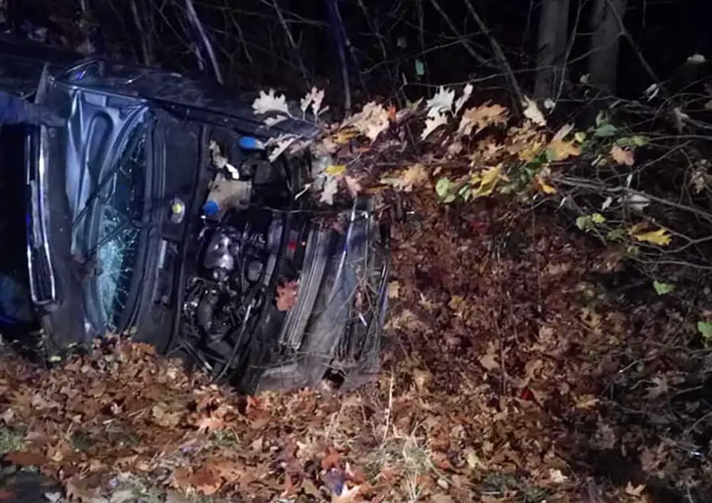 Do zdarzenia doszło w sobotę, 26 października, ok. godz. 5.30. Kierujący audi najprawdopodobniej z powodu zbyt szybkiej jazdy wpadł w poślizg i wypadł z drogi. Audi uderzyło w drzewa.