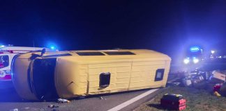 Nowa Sól. Wypadek busa na S3. Dachował, jest kompletnie rozbity