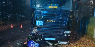 Zderzenie ciężarówki z motocyklem. Kierowca jednośladu miał wielkie szczęście (ZDJĘCIA)