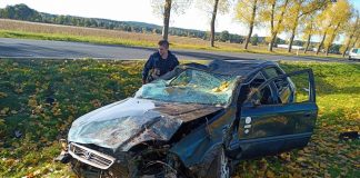 Pijany Ukrainiec wypadł z drogi koło Niedoradza. Podczas jazdy pił piwo...