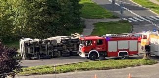 Ciężarówka ze złomem przewróciła się na trasie S3 pod Zieloną Górą....