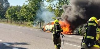 Pożar samochodu na „starej trójce”. Volvo spłonęło doszczętnie (ZDJĘCIA)