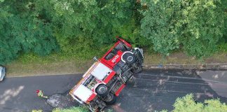 Poważny wypadek wozu strażackiego. Jechał do pożaru. Leży na boku. Rannych...