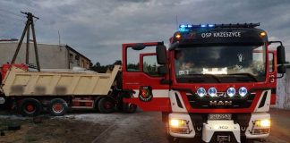 Zapaliło się koło jadącej ciężarówki. Gasili je policjanci