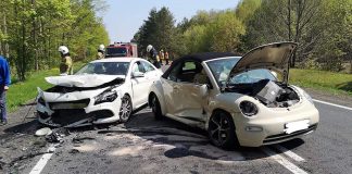 Wypadek koło Krzeszyc. Zderzenie volkswagena i mercedesa (ZDJĘCIA)