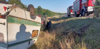 Na trasie S3 dachował land rover z przyczepą kempingową (ZDJĘCIA)
