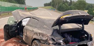 Bmw roztrzaskało się o bariery na autostradzie A2 (ZDJĘCIA)