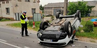 Poważny wypadek. Pijany ochroniarz dacią staranował renault. Na koniec dachował (ZDJĘCIA)