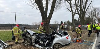 Śmiertelny wypadek. Volkswagen uderzył dachem w drzewo. Samochód złamał się (ZDJĘCIA)
