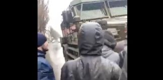 Co za odwaga! Ludzie blokują kolumnę wojsk rosyjskich, a co robią...