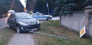 Pijak peugeotem ściął znak drogowy. Chciał dalej jechać, ale obezwładnił go...