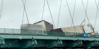 Wiatr przewrócił ciężarówkę na wiadukcie nad S3 pod Świebodzinem (ZDJĘCIA CZYTELNIKA)