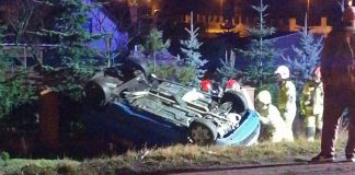 Groźnie wyglądające zdarzenie. Fiat wypadł z drogi i dachował (ZDJĘCIA)