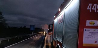 Pożar naczepy ciężarówki na węźle A18 (ZDJĘCIA)