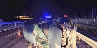 Wypadek. Ford uderzył w barierki na S3 i przewrócił się (ZDJĘCIA)