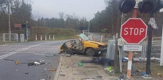 Tragedia na przejeździe kolejowym. Pociąg rozerwał samochód. Kierowca wypadł z auta....