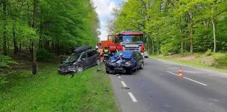 Wypadek. Czołowe zderzenie renault i volkswagena. Dwie osoby ranne (ZDJĘCIA)