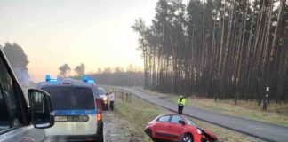 Renault wypadło z drogi i zaryło w pobocze. Na miejscu zielonogórska...