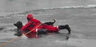Gorzów. Strażacy ratowali psa, który utknął między taflami kry na rzece....