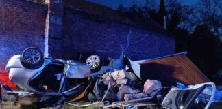 Pijany seatem uderzył w ogrodzenie, garaż i budynek