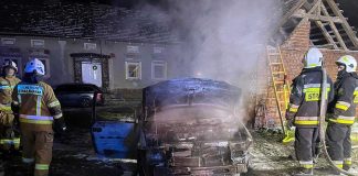 Strażacy walczyli z pożarem samochodu i obronili budynek