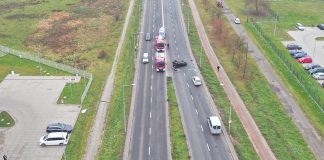 Wypadek. Jeden z samochodów dachował. Tak to wyglądało z lotu ptaka...