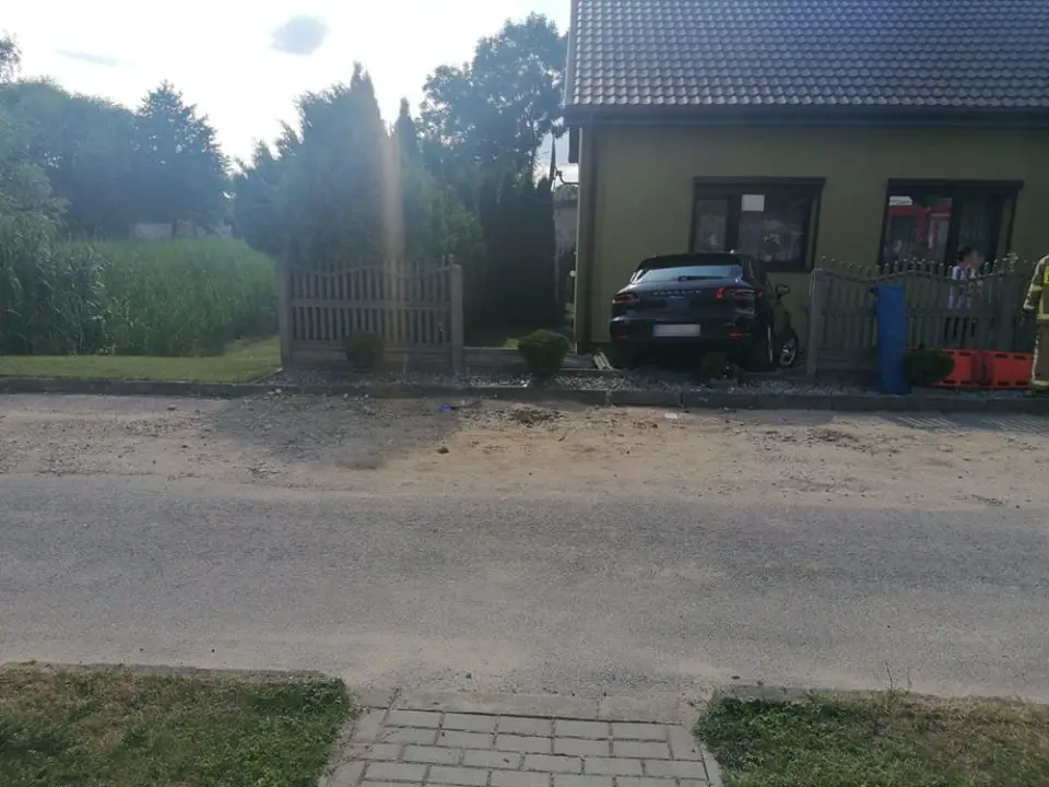 61-letnia kobieta, mieszkanka Ostrzeszowa, parkowała porsche. Wszystko wskazuje na to, że pomyliła hamulec z pedałem gazu. Wtedy z dużą siłą uderzyła w audi, skosiła płot i uderzyła w dom.