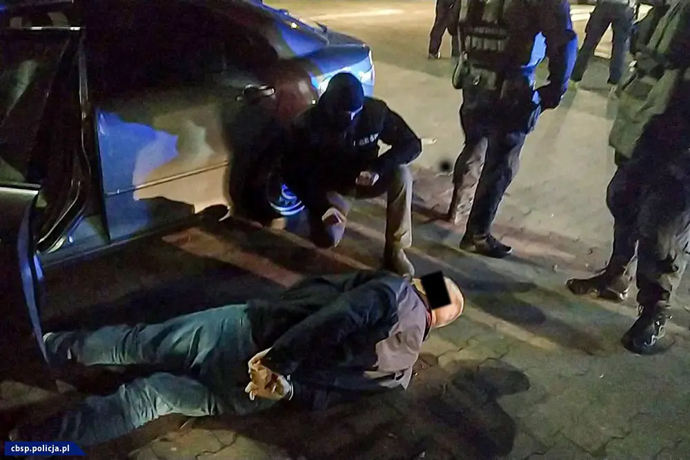 Ustalono, że w sprawę może być zamieszanych kilka osób. Uderzenie nastąpiło w tym samym momencie w kilku miejscach Polski, w Warszawie, Gdyni oraz w woj. lubuskim. Działania zostały przeprowadzone przez policjantów CBŚP, Centralnego Pododdziału Kontrterrorystycznego Policji „BOA” i Samodzielnego Pododdziału Kontretrrorystycznego Policji w Warszawie. Zatrzymano trzy osoby. Czwarta jest poszukiwana.
