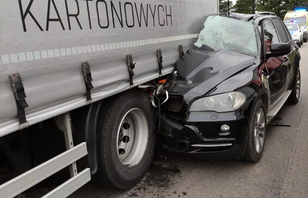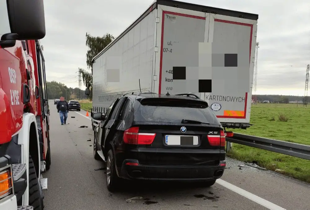 Dyżurny ostrołęckich policjantów został poinformowany o poważnym zderzeniu terenówki i pojazdu ciężarowego w Łysych. Terenowe bmw wbiło się w tył ciężarówki. Na miejsce natychmiast skierowano policjantów z posterunku policji w Łysych oraz służby ratunkowe.