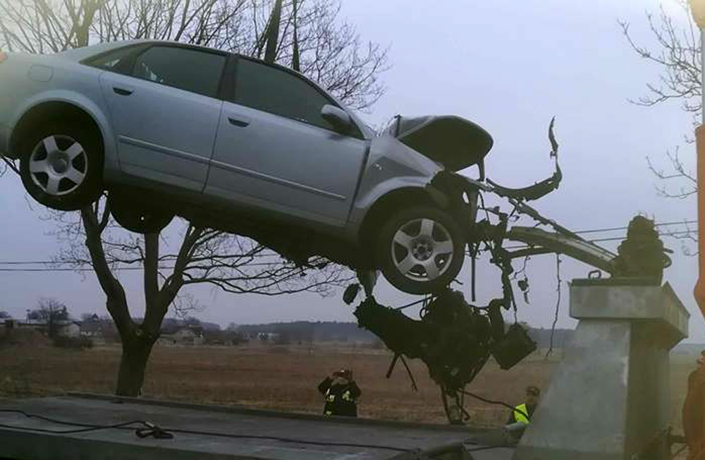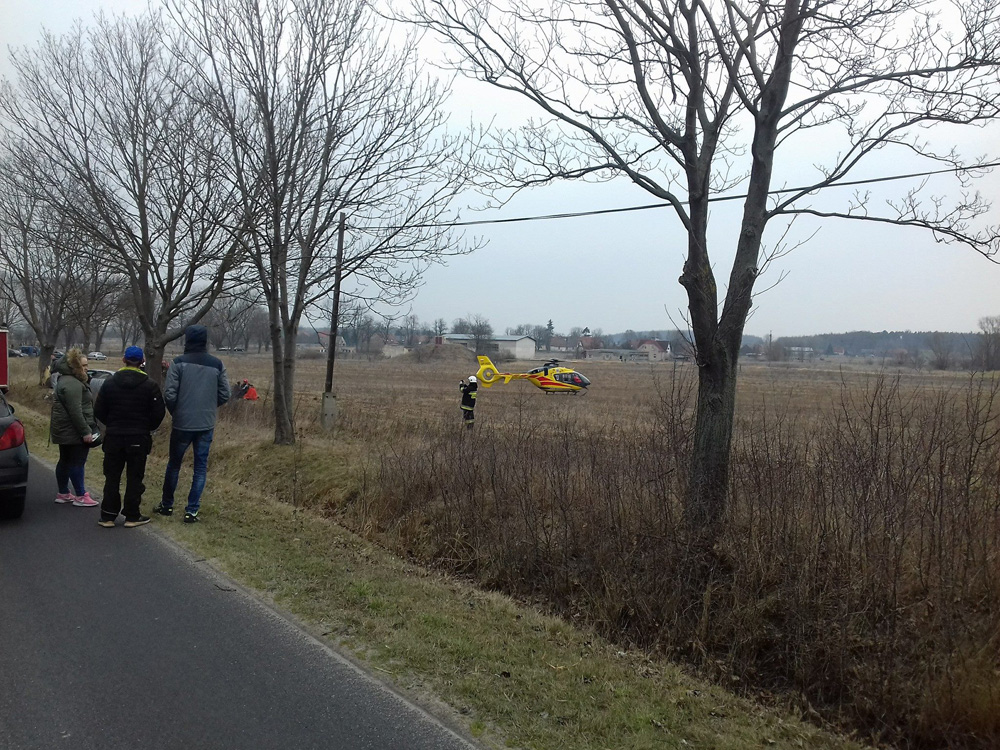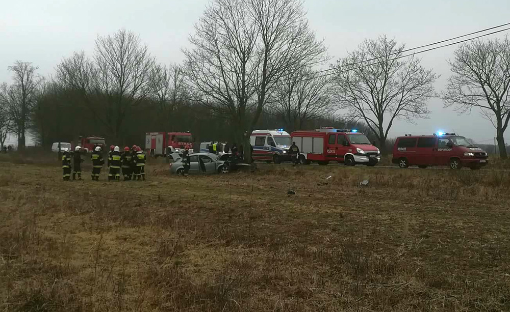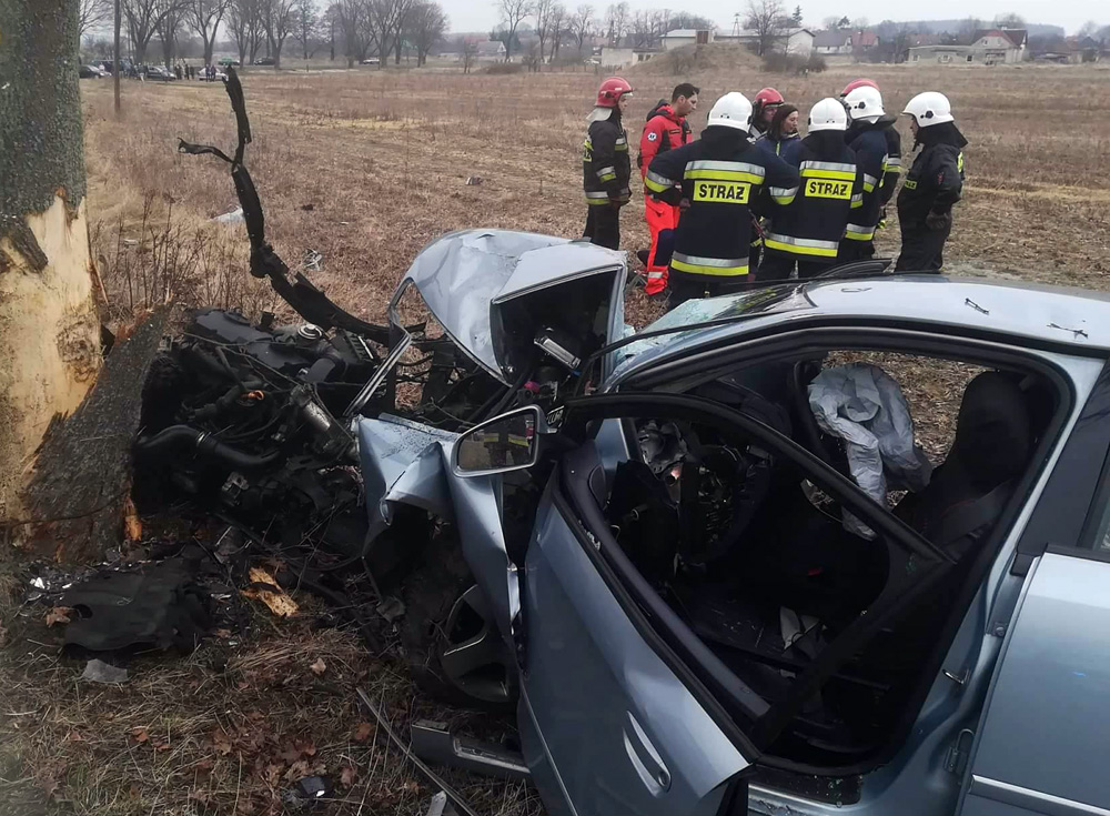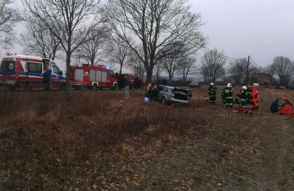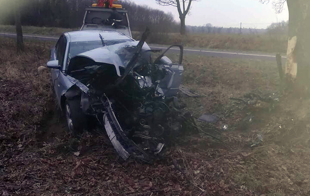 Wszystko wydarzyło się w sobotę, 31 marca, koło Datynia (pow. żarski). Kierujący audi z nieustalonych jeszcze przyczyn wypadł z drogi i roztrzaskał się o drzewo. Na miejsce przyjechały dwie jednostki OSP Brody, dwie jednostki strażaków z Lubska i karetki pogotowia ratunkowego. Wylądował również śmigłowiec lotniczego pogotowia ratunkowego.