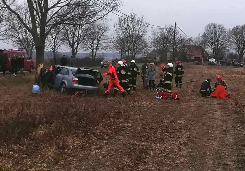 Strażacy OSP Brody zabezpieczyli rozbite audi i udzielili pomocy rannym w wypadku.