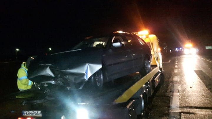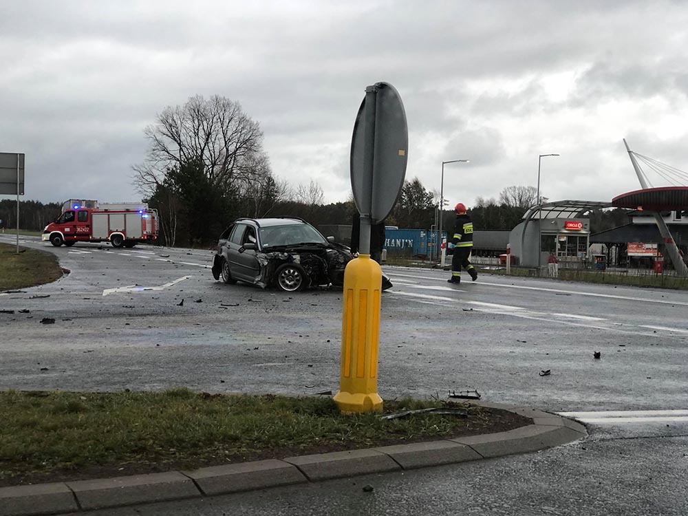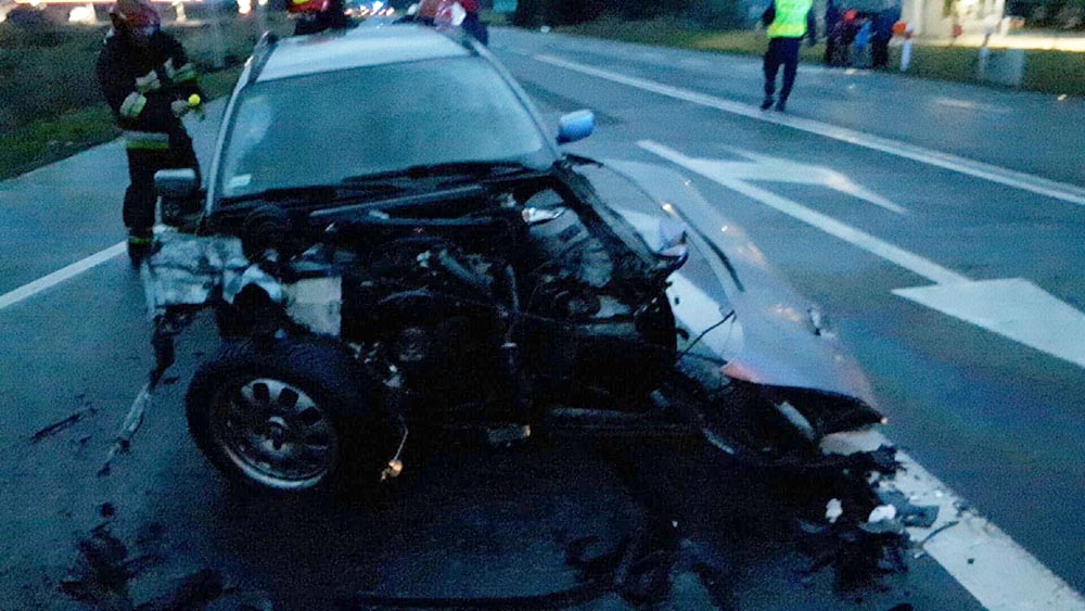 Doszło do potężnego zderzenia. W bmw został oderwany przód. Kierujący wyszedł ze zderzenia bez szwanku. To tylko kolizja, chociaż uszkodzenia samochodu są tak duże, że bmw nadaje się już tylko do kasacji.