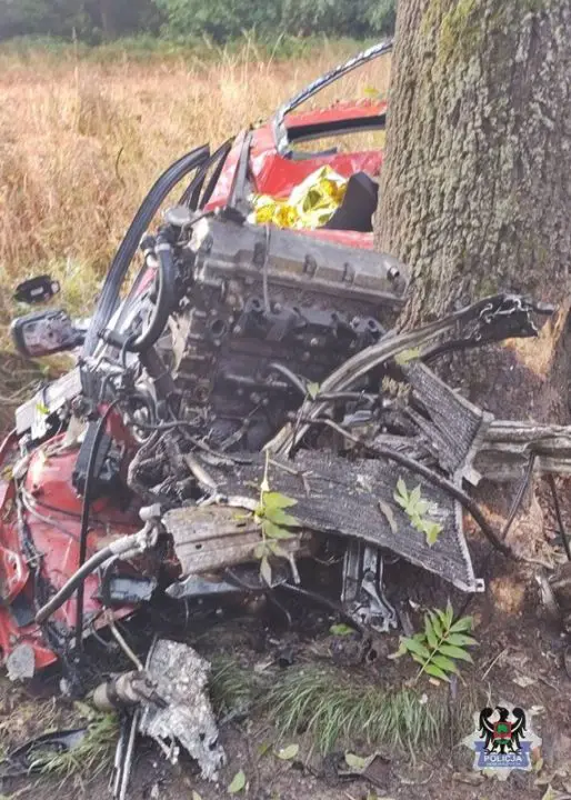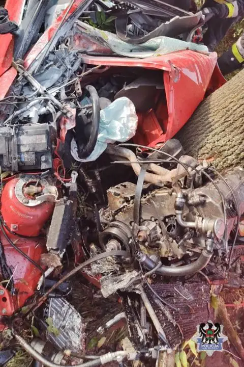 Około godz. 7.20 rozpędzone bmw z potężna siłą uderzyło w drzewo. Siała uderzenia była tak duża, że bmw zostało zmiażdżone.