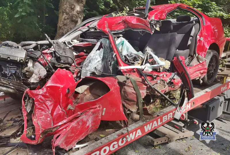 Na miejsce dotarły służby ratunkowe. 22-letni kierujący niestety nie miał żadnych szans. Zginął na miejscu. Jak informuje wałbrzyska policja, uszkodzenia samochodu wskazują, że do wypadku doszło przy znacznej prędkości. 22-letnie mieszkaniec powiatu świdnickiego prawo jazdy kat. B miał od ponad 3 lat.