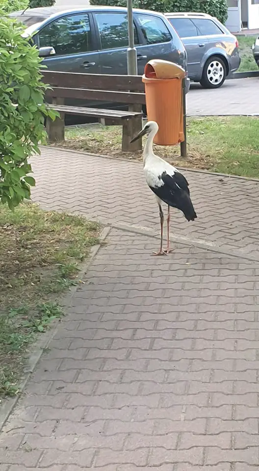 Godz. 20.00 Na miejsce przyjechała wezwana policja oraz biuro ochrony zwierząt. Bocian jest już bezpieczny w schronisku dla dzikich zwierząt. Bocian miał obrączkę aż z Gdańska.