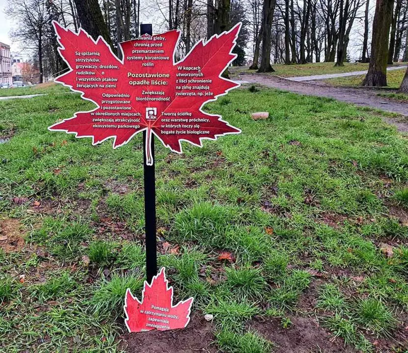 To nie koniec nowego wandalizmu. Zniszczony został również ładny liść edukacyjny zamontowany w Parku Tysiąclecia.