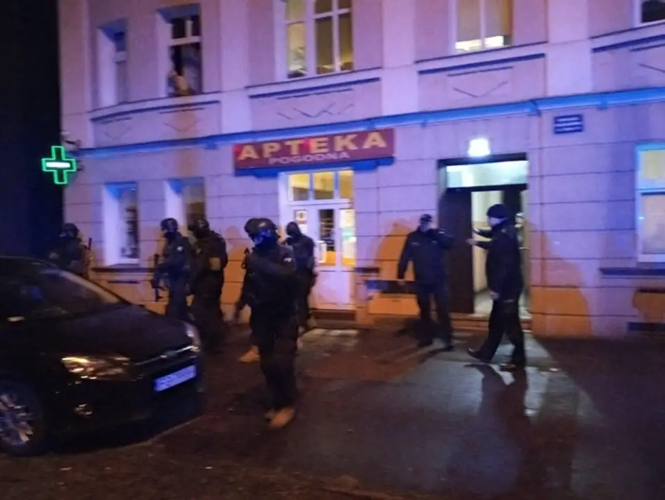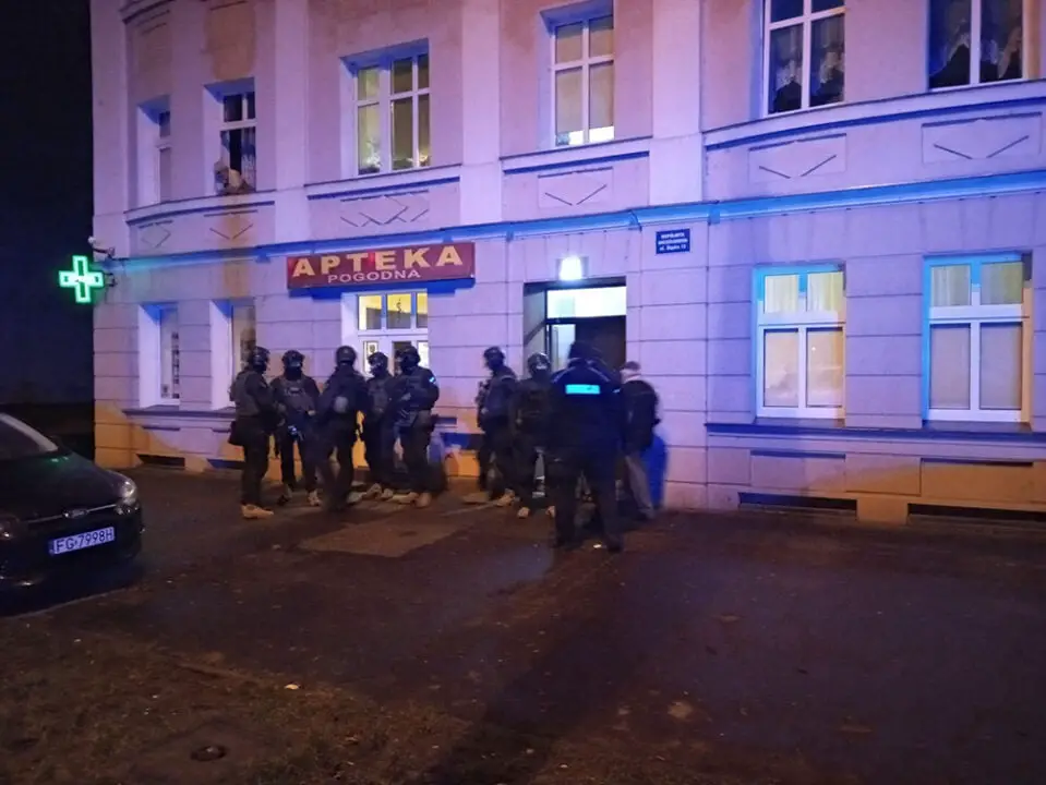 Godz. 20.00 Antyterroryści wyprowadzili kilku mężczyzn z kamienicy przy ul. Śląskiej.