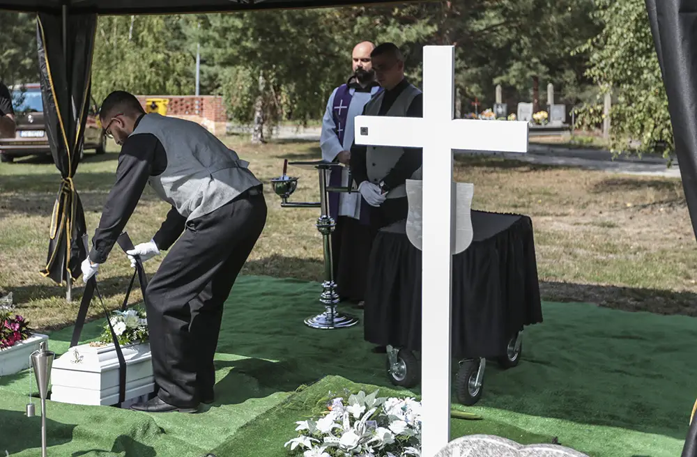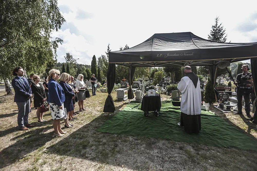 Na ceremonię pogrzebową na cmentarzu w Otyniu przyszło kilku mieszkańców. Chcieli pożegnać Maluszka nazwanego przez prokuratorów Jasiu. Nie chcieli, żeby był sam w swojej ostatniej drodze. Przyszła prokurator Ewa Antonowicz, zastępca prokuratora rejonowego w Nowej Soli. Na grobie Jasia położyła kwiat. Prokurator Antonowicz prowadzi trudne śledztwo dotyczące śmierci Jasia.