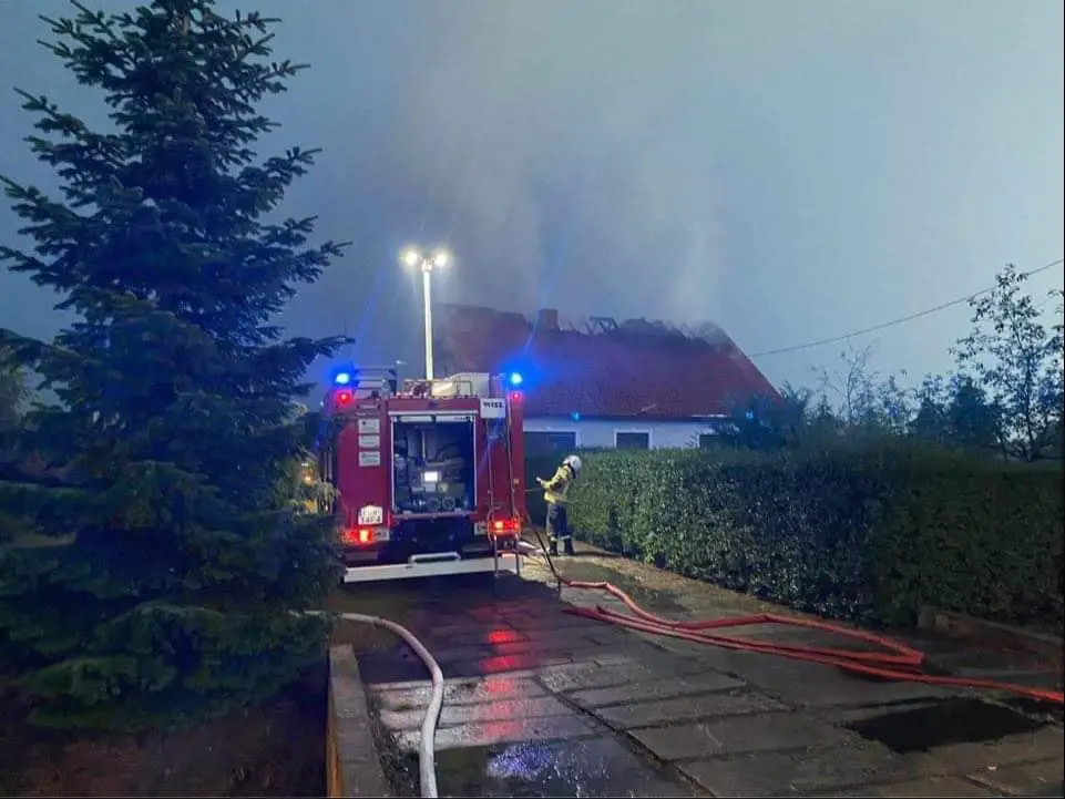 W środę, 23 września, wieczorem nad regionem przeszły burze. Piorun uderzył w dom w Krasowcu koło Deszczna. Dach od razu zapalił się.